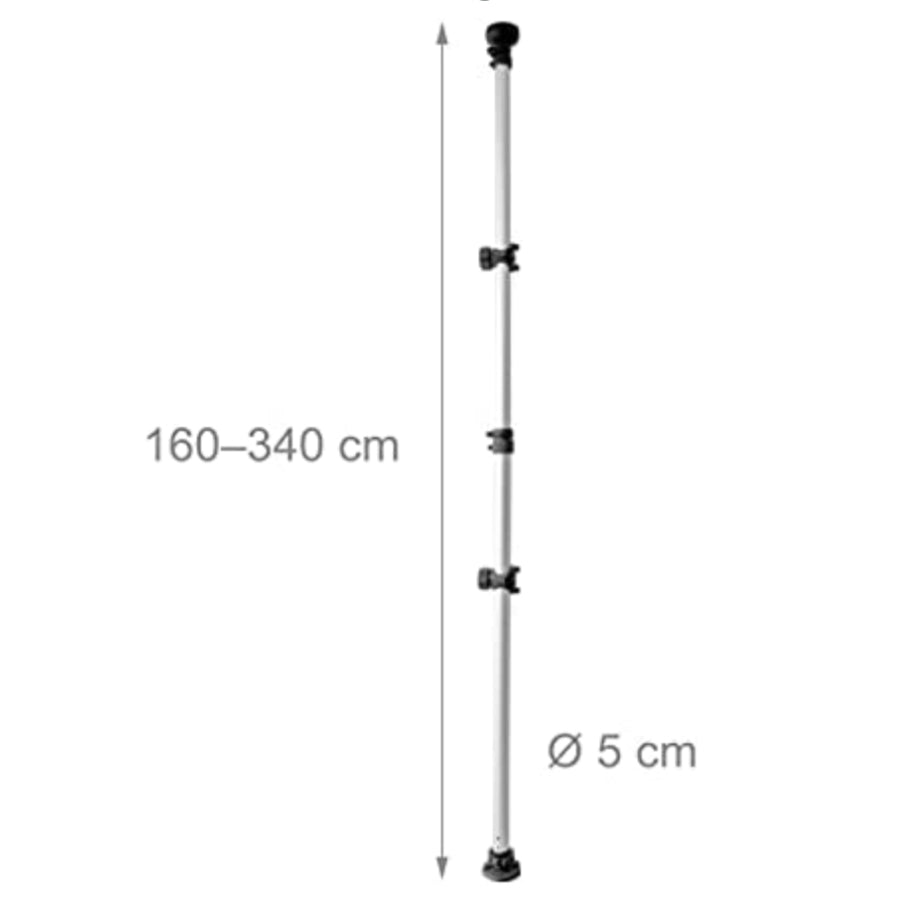 The pole is adjustable in height from approx. 170cm to approx. 340cm