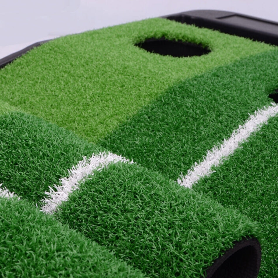 The dual track turf provides a realistic putting surface consistent with a high-end golf course.